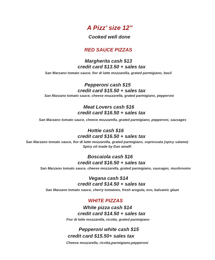 Pizza Menu